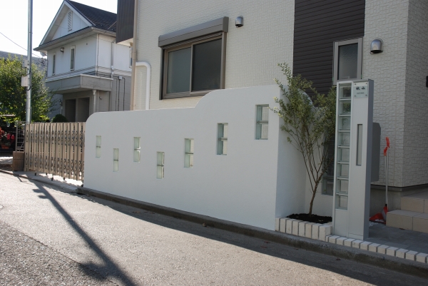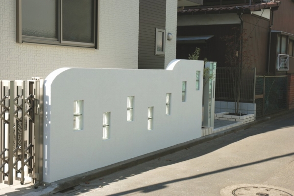 マテリアル ガラスブロック 塗壁 レンガ インターロッキング 機能門柱 伸縮門扉 アルミフェンス