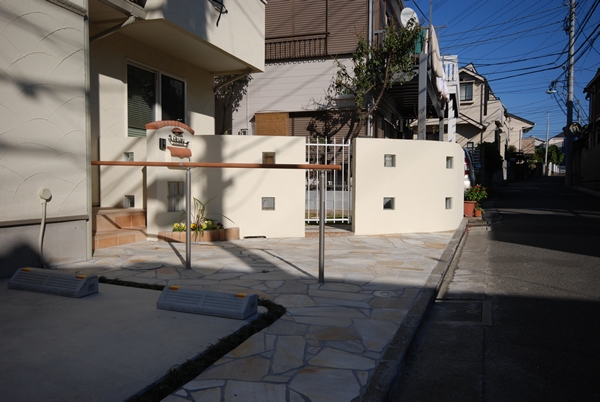 弊社の数ある外構施工事例から厳選してご紹介します。 【No.33】 O様邸 カテゴリ セミクローズ外構 施工場所 東京都調布市 施工費用 150万~200万 マテリアル ガラスブロック 塗壁 レンガ 天然石 鋳物門扉 手摺 【No.33】 O様邸 完成写真 その他の画像集