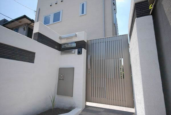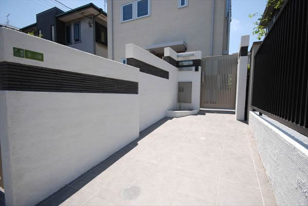 マテリアル タイル 塗壁 アルミ門扉 オーバードア