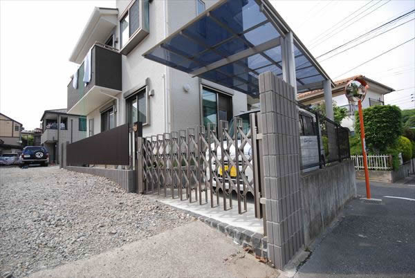 マテリアル 化粧ブロック タイル レンガ 機能門柱 伸縮門扉 アルミフェンス カーポート