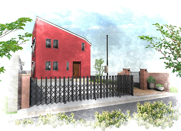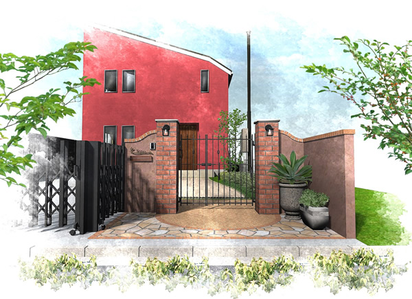 マテリアル 塗壁・伸縮門扉・鋳物門扉・レンガ