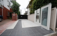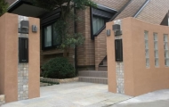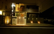 アルミの門の隣に木目の角柱を組み合わせたり、ガラスブロックと天然石のコラボレーション を楽しんだりなど、異なる素材どうしでの「遊び」が住まい手や町ゆく人を楽しませます。 また、住まいの夜間の顔にも注目し、ライティングプランにも一工夫しております。 夜間は足元を照らせばとりあえずの安全は確保できますが、植栽を下から照らすことで 幻想的な雰囲気を持たせつつ、セキュリティ面を強化することができます。